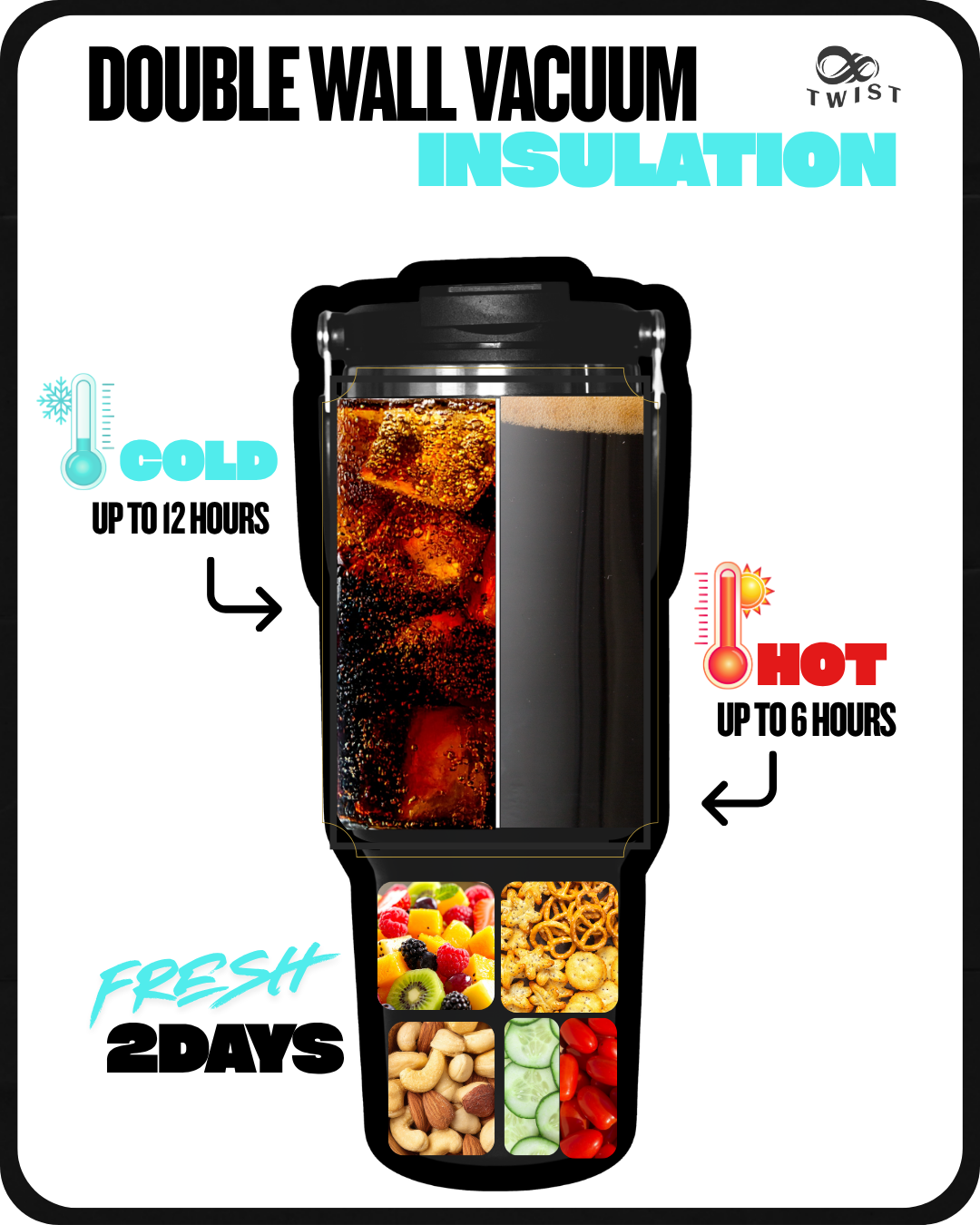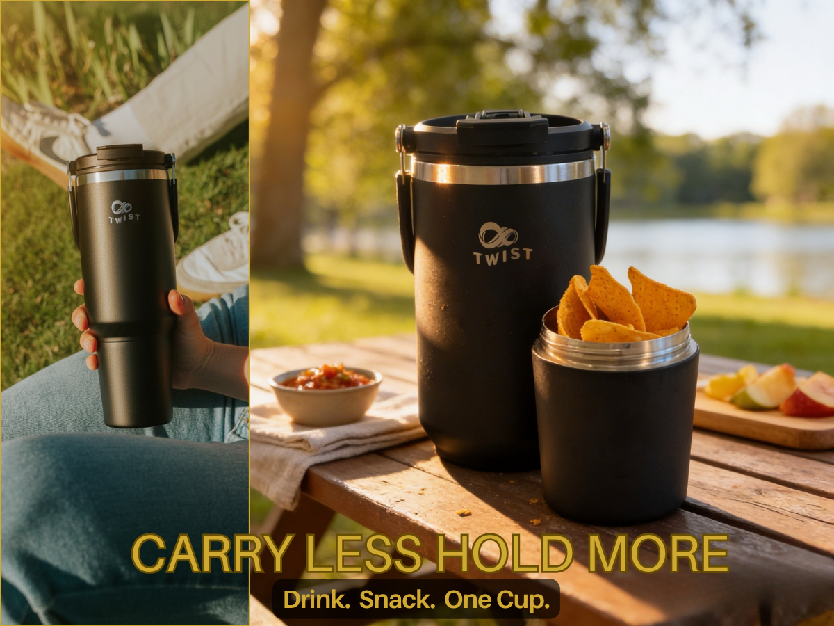 TWIST holds your drink AND snack in one place, always within reach.